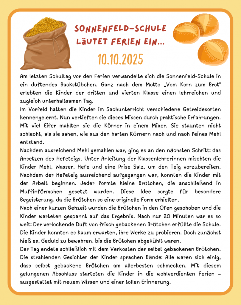 • Sonnenfeld-Schule läutet Herbstferien ein…